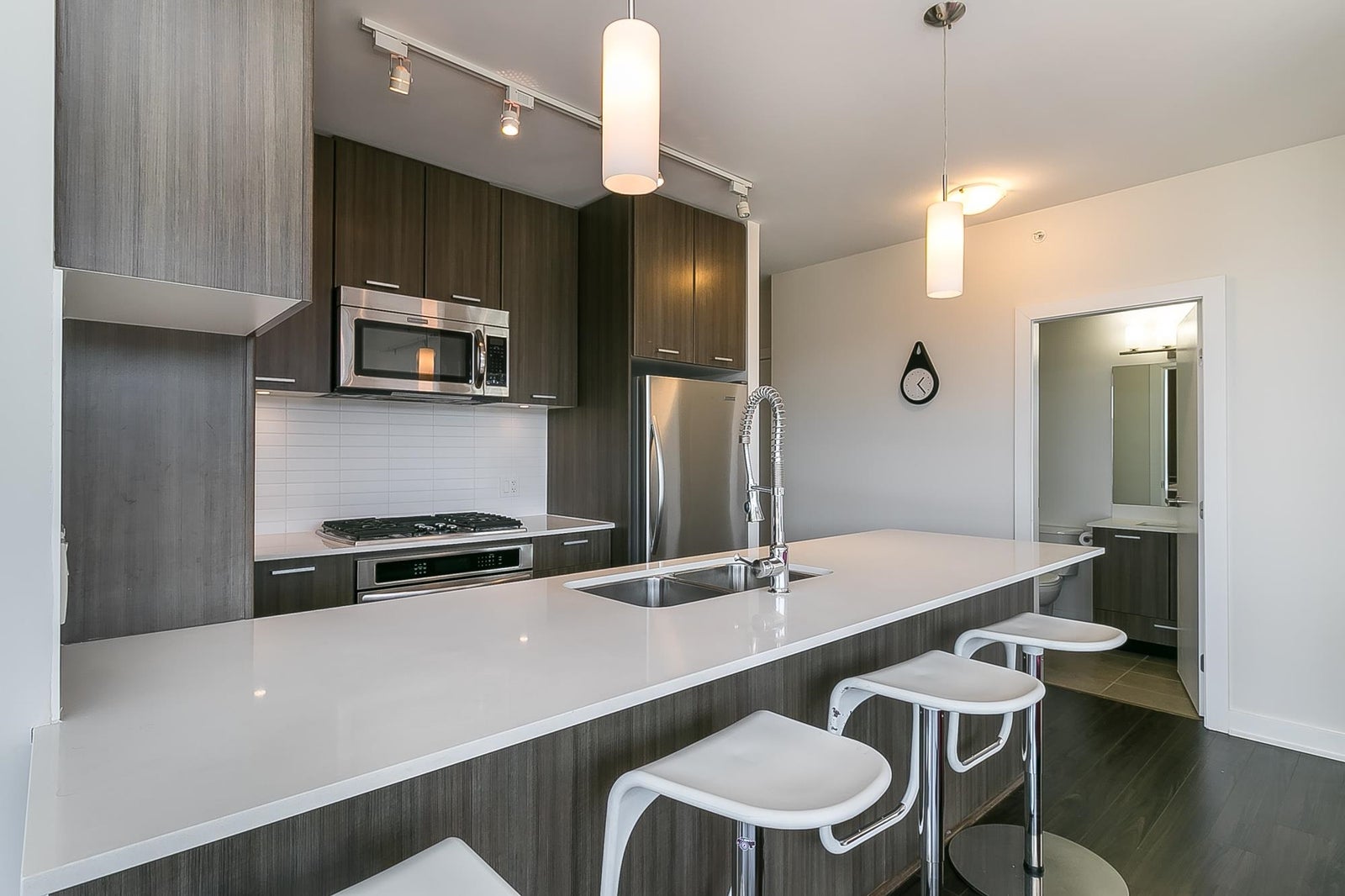 Amazing views of Port Moody Inlet and the Mountains! Tastefully updated on the 22nd floor, this 2-bed & 2 bath boasts some amazing views of the Inlet and the North Shore Mountains. Built in 2012, this unit was designed with high ceilings & a large floor plan, feeling as if you are living in the clouds. The open kitchen with large breakfast bar is finished with quartz countertops, stainless appliances and LED lights. The building has great amenities, including a gym, yoga room, sauna, steam room, tennis & basketball courts, fenced-in dog park, lounge, media room & party room. steps from all that Suter Brook Village has to offer, Rocky Point Park, Brewers Row, walking trails, Skytrain and walking distance to all Port Moody Festivals! This is where you want to be. Call today to view.