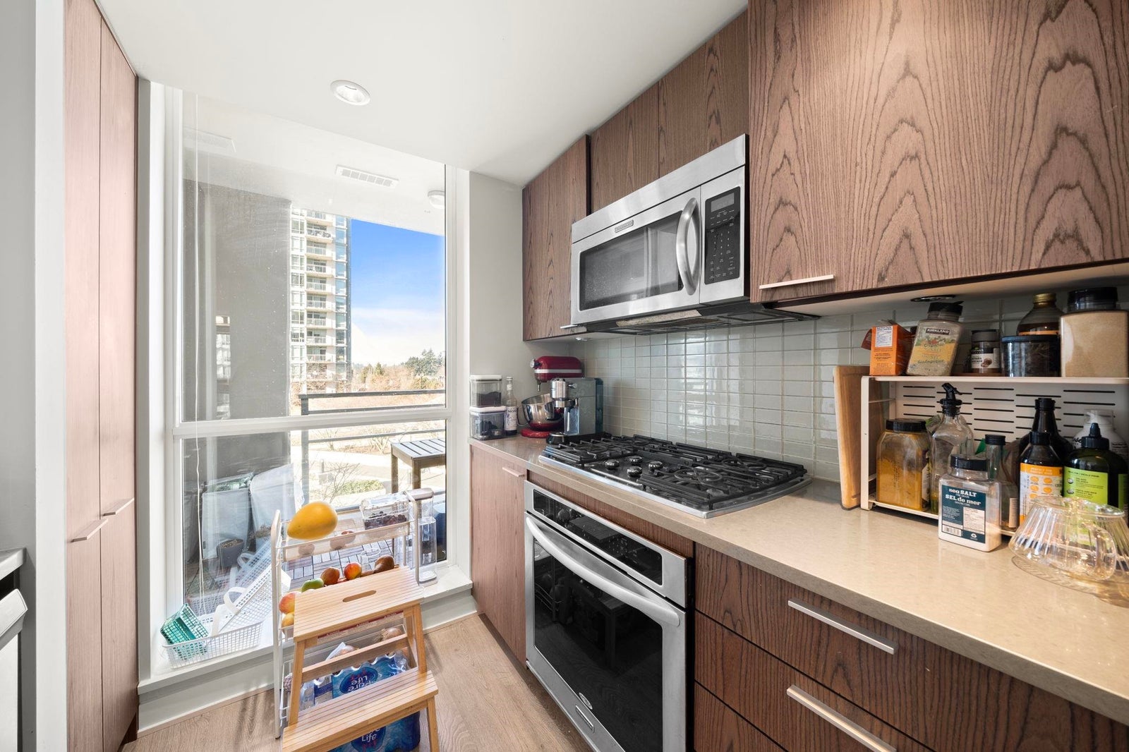 Bright and spacious 2 Bed / 2 Bath home at Grand Central 3 by Intergulf in the heart of Coquitlam Centre. Enjoy stunning mountain views and excellent natural light through floor-to-ceiling windows. Functional open-concept layout with high ceilings, engineered flooring, quartz countertops, and stainless steel appliances. Large kitchen window offers beautiful sunsets while you cook, and the covered balcony is perfect for morning coffee with mountain and city views. Resort-style amenities include an outdoor pool and hot tub, access to three gyms, yoga studio, clubhouse, rooftop garden with BBQ area, and playground. Unbeatable location steps to Lincoln SkyTrain, Coquitlam Centre Mall, Lafarge Lake, 1 parking stall and 1 locker included. Open House Saturday, February 7, 11:30 AM to 1:30 PM.