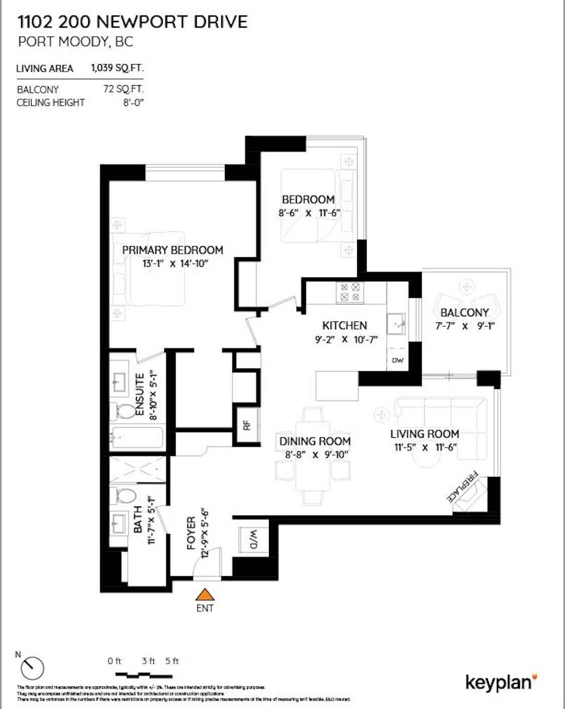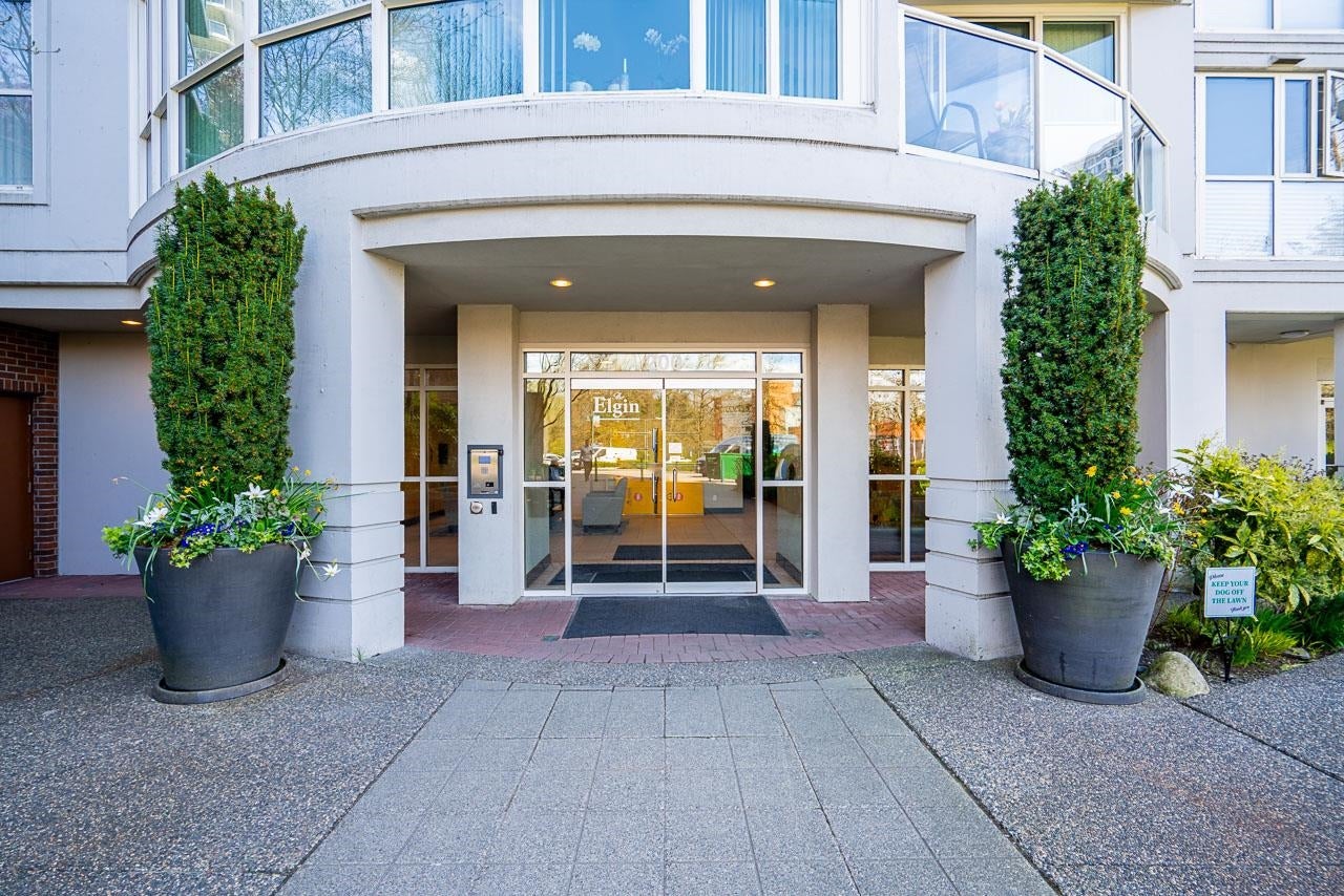 RENOVATED CORNER UNIT, 1 balcony & open private mountain & city views. Large welcoming entry, bedrooms on opposite end for ultimate privacy, updated kitchen & baths, s/s appliances, hardwood flooring, new Washer/Dryer & cozy gas fireplace. Dining room w/direct access to the private & covered balcony. In the heart of Newport Village, shopping at your doorstep at your doorstep & Ocean, Mountains, Parks, & Skytrain steps away. The Elgin - well respected, impeccably maintained & well managed building w/beautiful grounds & proactive strata. Lots has been, updated, roof & piping done, new elevators. Ample storage space throughout. 1 parking, 1 locker, bike rm, gym, hot tub, workshop, lounge, caretaker.