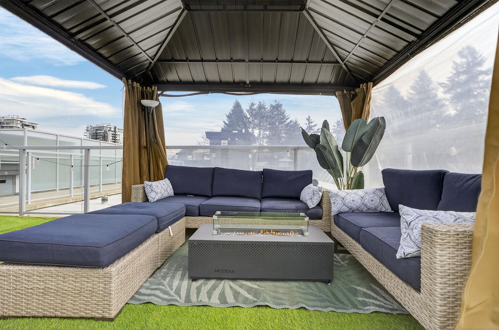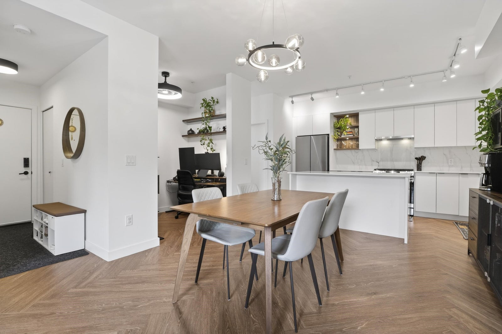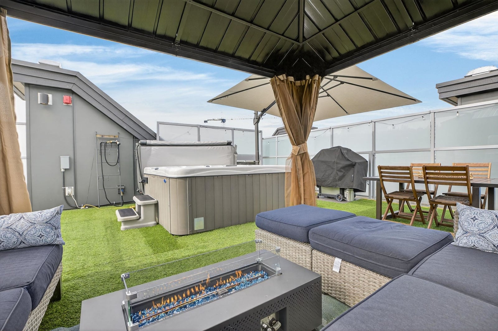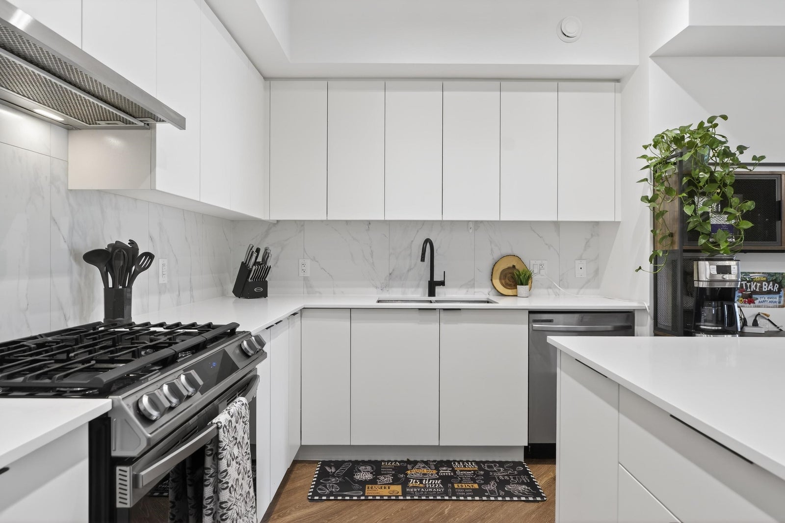 Welcome to THE CLYDE in the vibrant heart of Port Moody! This stunning penthouse has 2 bedrooms + den + 2 bathrooms, highlighted by an expansive private rooftop patio complete with a hot tub & metal gazebo—perfect for relaxing or entertaining. Offering 1,054 sq ft of open-concept living, the home showcases a sleek white kitchen with quartz countertops, a large island, S/S appliances, & vinyl herringbone flooring throughout. The spacious primary bedroom includes custom built-in cabinets & a private ensuite, while the second bedroom is bright & generously sized with plenty of natural light. Bonus features include 2 side-by-side EV-ready parking stalls, 1 storage locker & 2 pets allowed. Ideally located just steps from Inlet Skytrain & everything Port Moody offers.